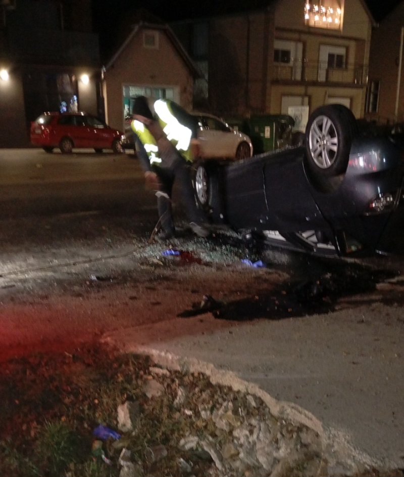 Nešto pre 18 časova na krivini kod marketa "Maxi" u Karađorđevoj ulici došlo je do saobraćajnog udesa u kome je vozač "mazde" izgubivši kontrolu nad vozilom udario u betonsku ivicu pored kanala i prevrnuo se na krov.