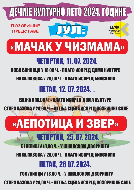 Večeras se nastavlja Dečije kulturno leto u opštini Stara Pazova. Najmlađi sugrađani u Belegišu moći će od 18 časova da uživaju u predstavi Lepotica i zver, koja će se igrati u školskom dvorištu a od 20 časova ista predstava dolazi u Novu Pazovu, na plato ispred bioskopa.