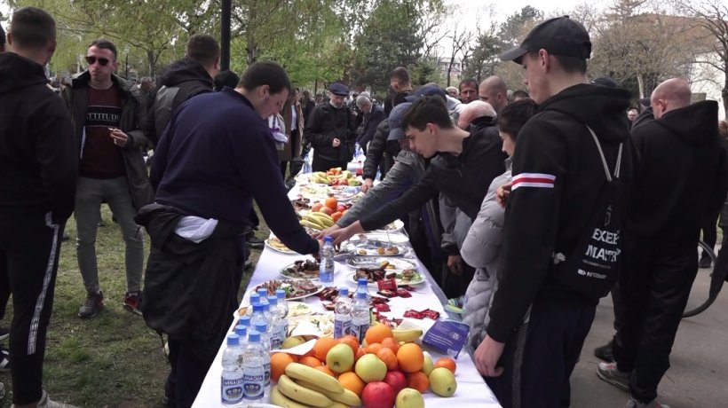 Napravili su kraću pauzu u gradskom parku, gde im je pripremljena hrana i piće a nakon odmora studenti su nastavili svoj put ka Beogradu, gde će učestvovati na velikom skupu Pokreta za narod i državu, zakazanom za subotu 12. i nedelju 13. aprila.