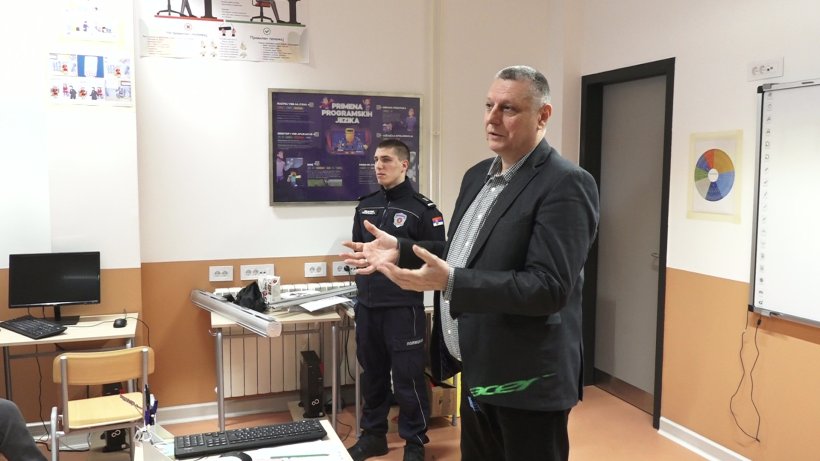 Predavanje su održali policijska službenica iz Policijske stanice u Staroj Pazovi, profesor stručnih predmeta Zoran Kuzmanov, kao i učenik i učenica trećeg razreda Srednje škole unutrašnjih poslova.